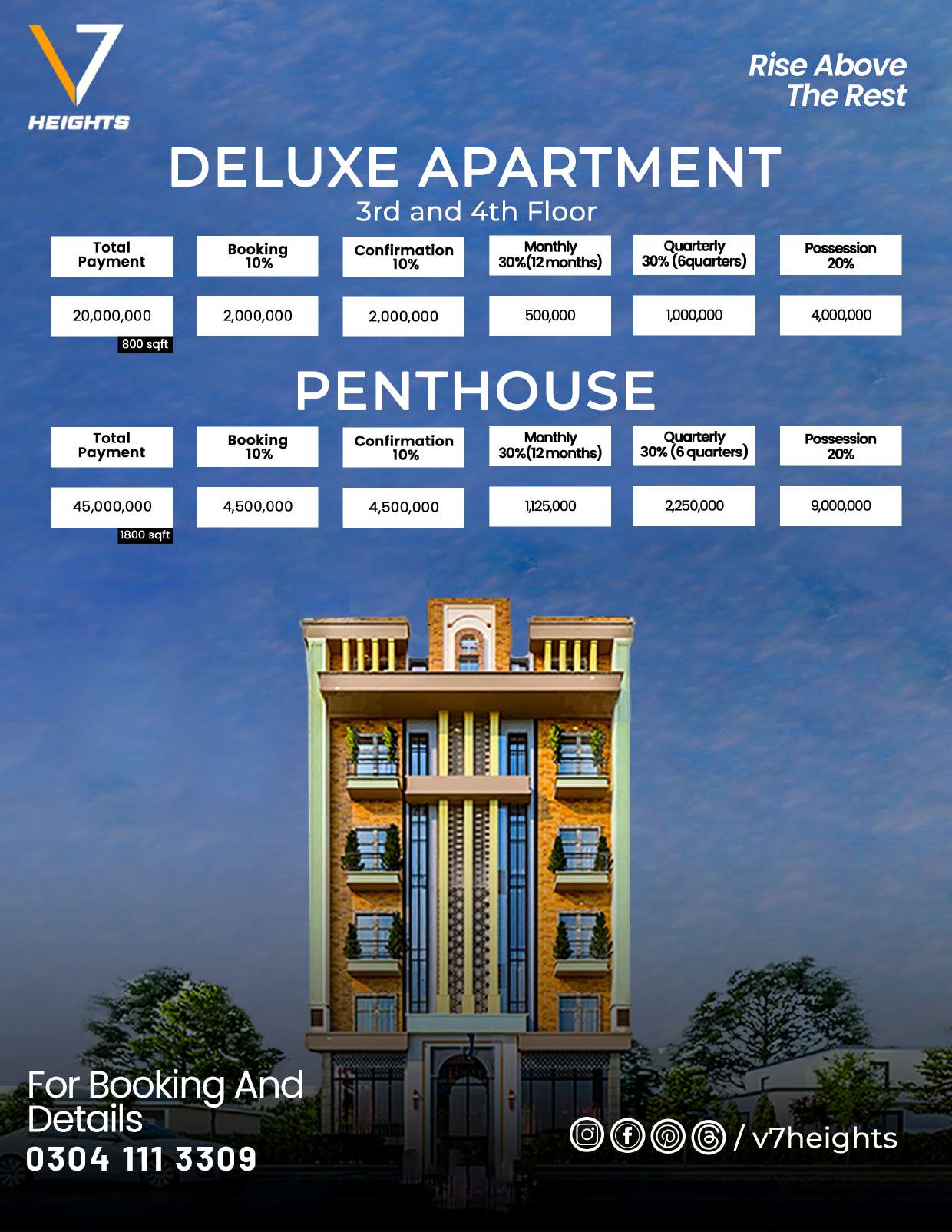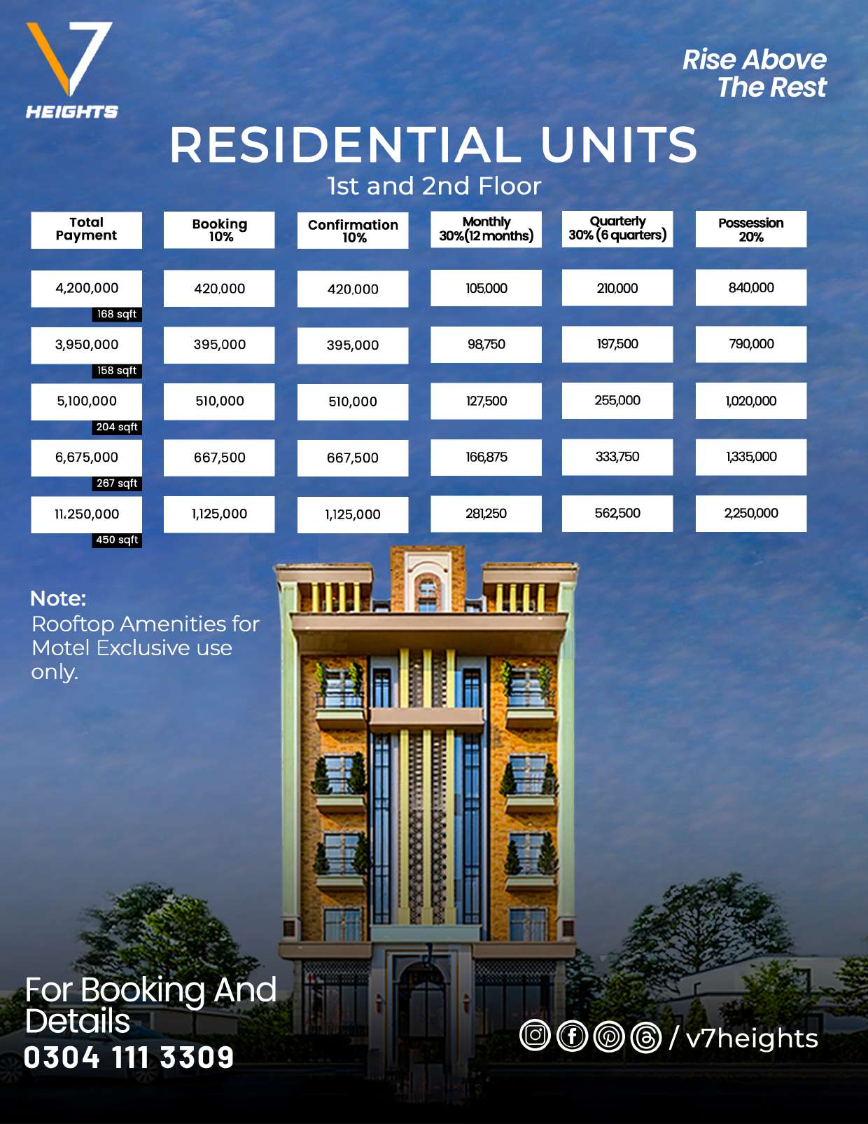 Victory Chib Heights is structured as a six-floor building, incorporating the lower ground, ground level, 1st to 4th floors, along with a captivating rooftop area.